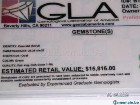 valeur affichee sur le certificat 26,36 ct 15816 Dollars du 05/2009