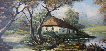 Huile sur toile: 42 x 72cm paysage encadré et signé.