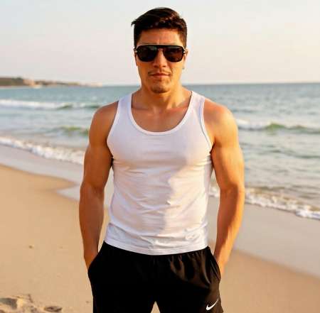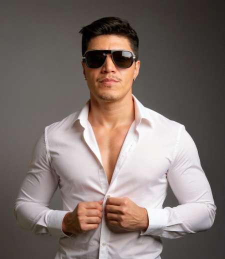 Jeune homme athlétique et musclé, je viens de Colombie. J'ai la peau ambrée sans poils naturelle, cheveux noirs et yeux marrons.